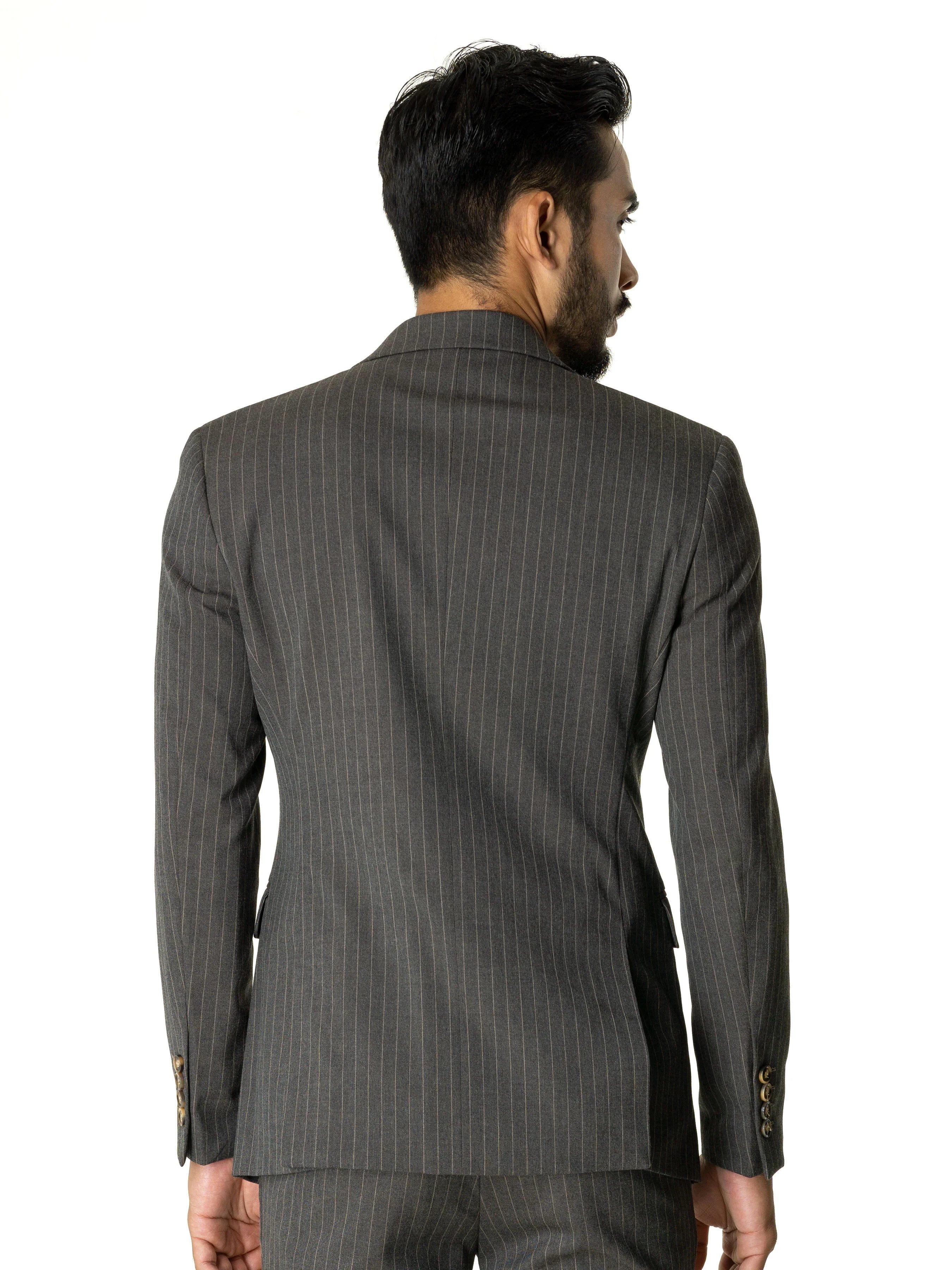 Single Breasted Suit Blazer - Dark Grey with Brown Pinstripe (Peak Lapel)