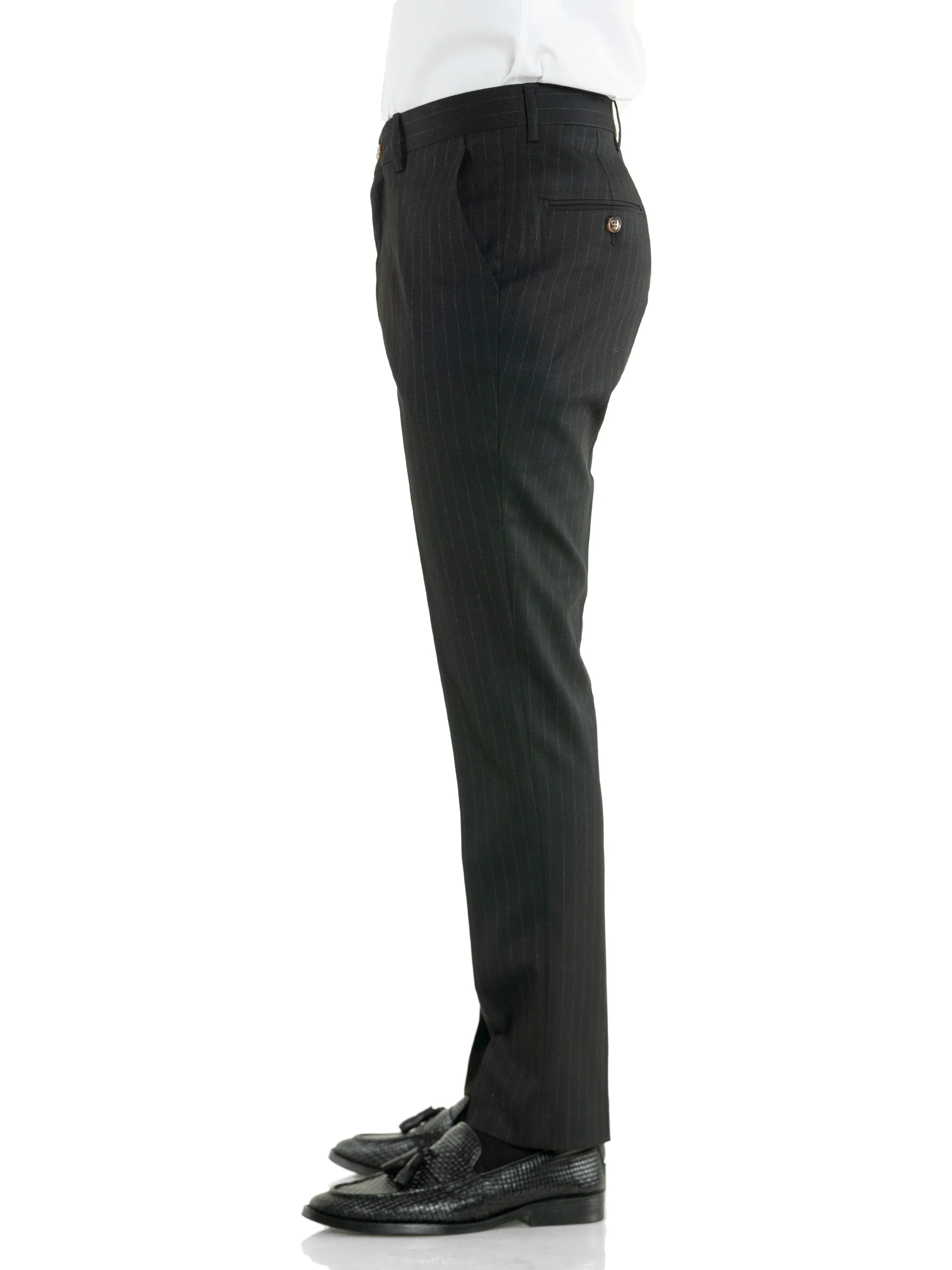 Trousers With Belt Loop - Black Pinstripes (Slim Straight)