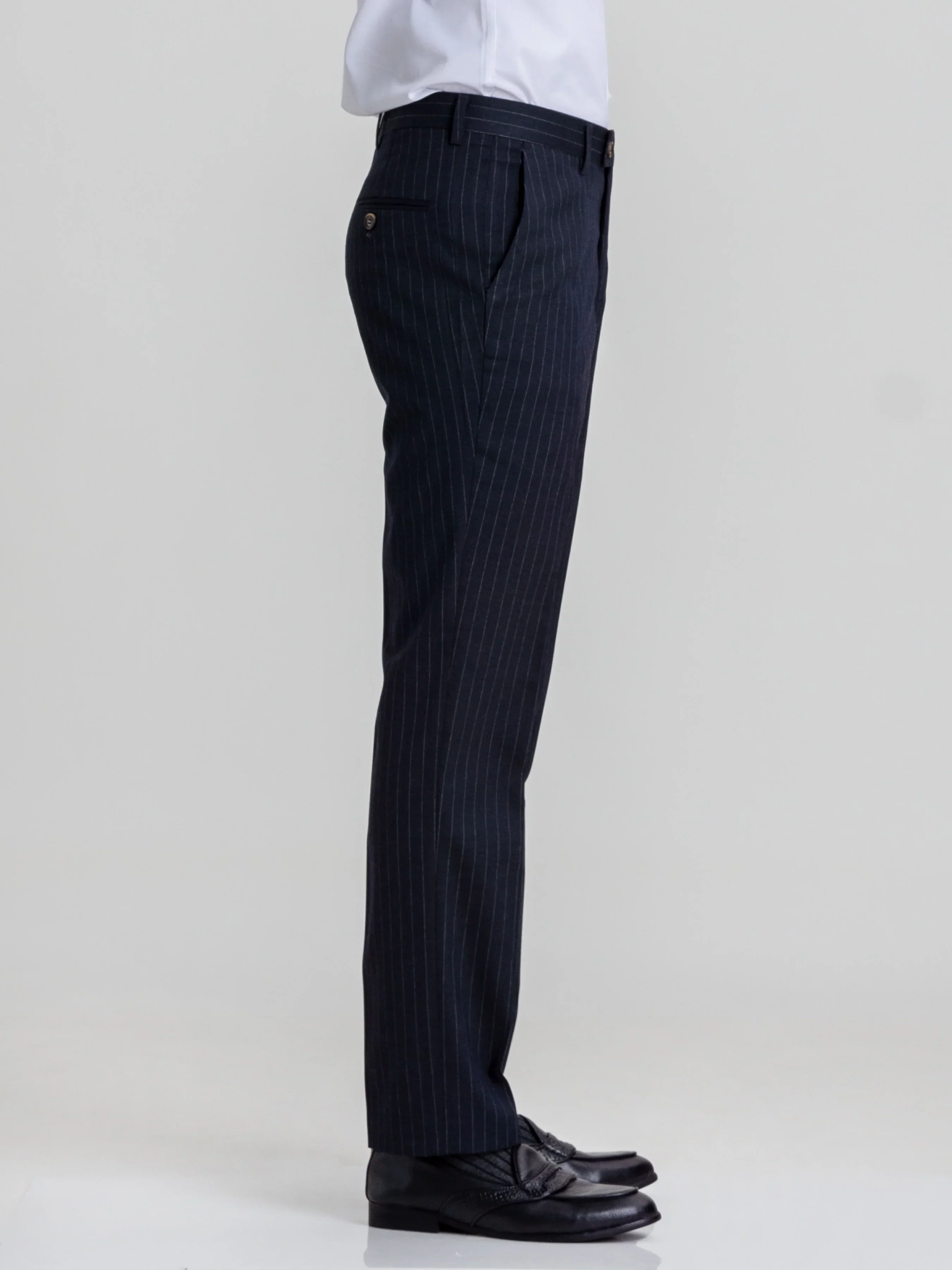 Trousers With Belt Loop - Navy Blue Pinstripe (Slim Straight)