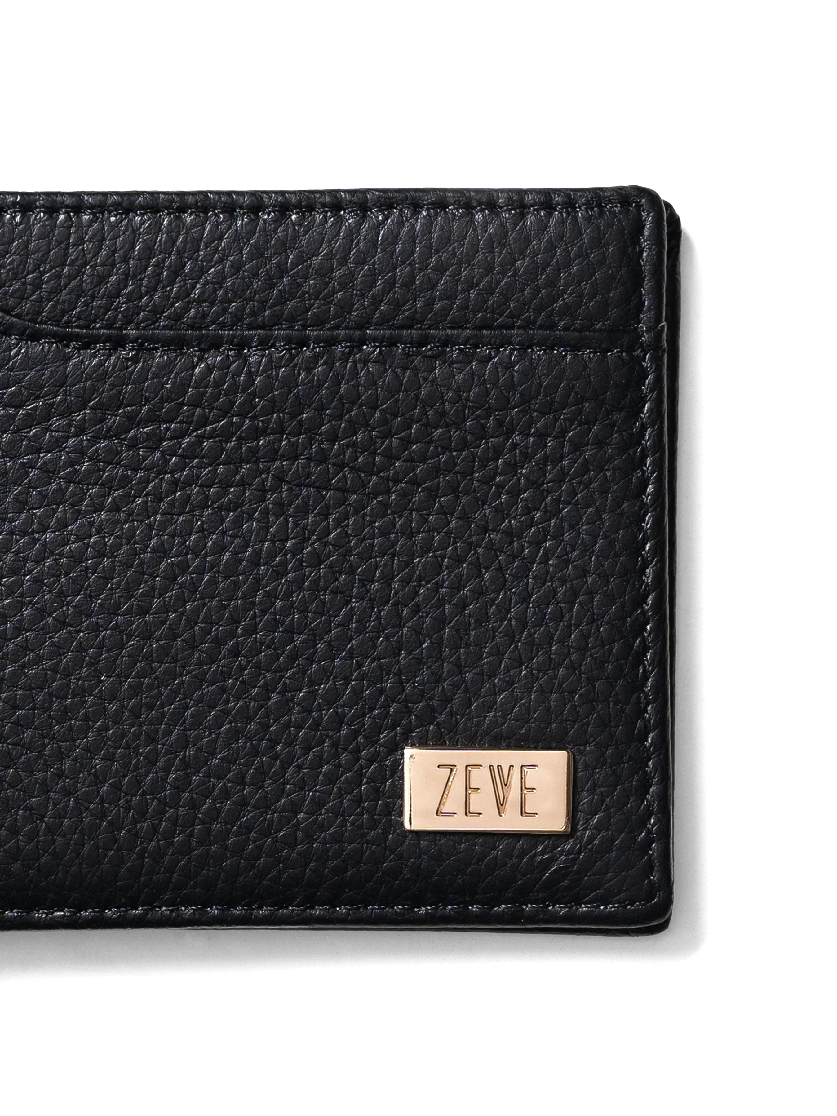 Zeve Slim Bifold Wallet - Black Pebble Grain Leather